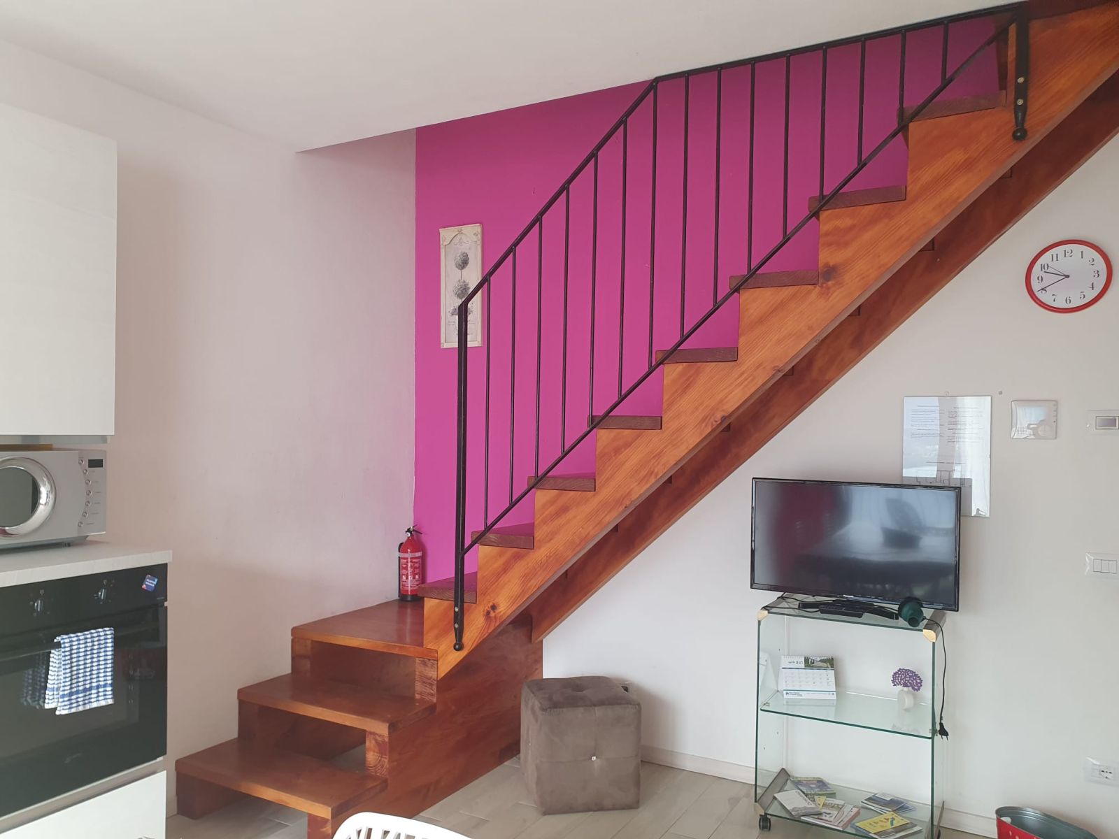 Die Wohnungen befinden sich im 1. OG und haben beide einen großen Balkon mit wunderbarem Blick. Jede Wohnung erstreckt sich auf 2 Ebenen, hat oben 2 Schlafzimmer sowie 2 schicke Badezimmer mit Dusche. Die Wohnzimmer unten sind gemütlich, die Einrichtung modern und individuell ausgesucht mit passender Deko. Die Küchenzeilen sind sehr gut ausgestattet mit Geschirrspüler, Backofen, Wasserkocher uvam.